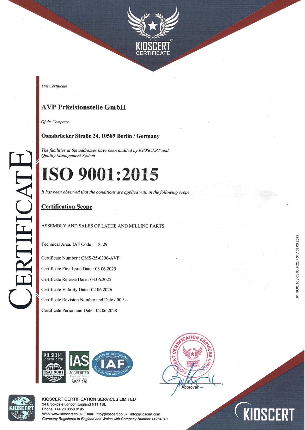 Zertifizierung unseres Qualitätsmanagementsystems. Online Prüfung der Zertifikate unter:
